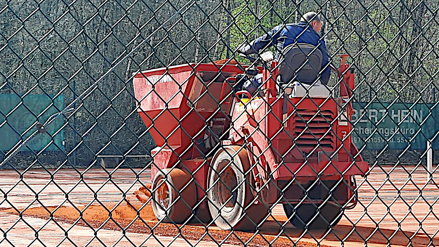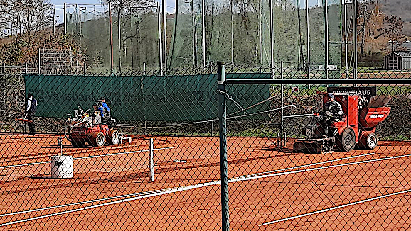 Pünktlich zum Start in die neue Saison wurden unsere Tennis-Plätze durch die Firma Nohe fachgerecht aufbereitet. Mit professionellem Gerät wurde die Oberfläche neu eingeebnet, verdichtet und optimal hergerichtet. Damit sind beste Voraussetzungen für spannende Spiele und ein gepflegtes Erscheinungsbild unserer Anlage geschaffen.
